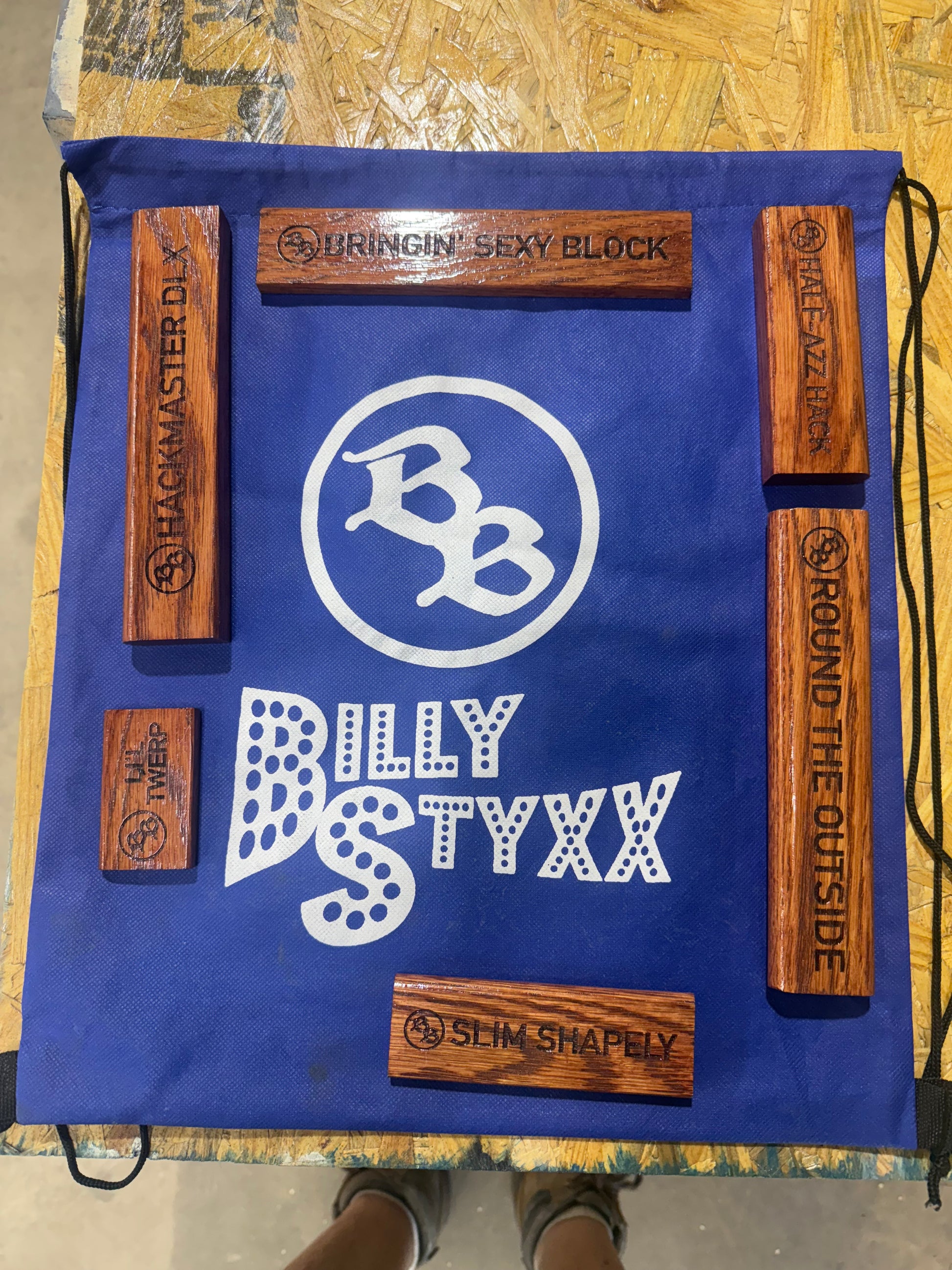 Includes 6 Oak BILLY STYXX with magnets. Shipped in the BILLY STYXX Nylon tote bag Beautifully stained and clear coated TOP-OF-THE -LINE